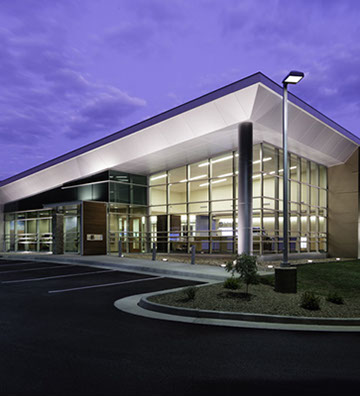 Some of the challenges we faced was limited access to the structure because of the site layout, irregular structural steel framing, and some design problems with the large exterior canopy because of the slope of the canopy and the transition to accommodate large sloped and straight storefront style windows. Our crew as able to overcome the challenges using large boom lifts for better access and made some framing modifications in the field to accommodate the steel and canopy problems.